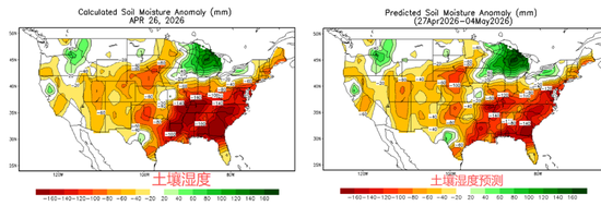 中期预估(截至5月底):5 月底墒情格局反转,东部/南部干旱成为主要矛盾,苗期生长受限将推动单产下调预期,天气溢价有望延续。市场关注点从 “播种延迟” 转向 “单产风险”。