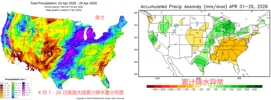中西部核心种植带4月迄今累计降雨:呈现明显的 “东西分化” 格局